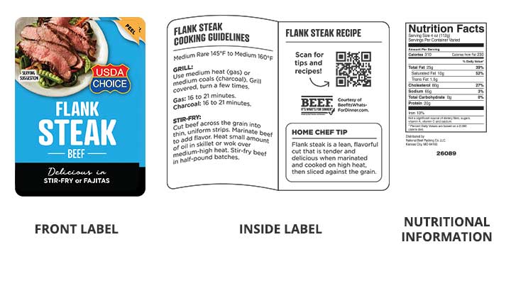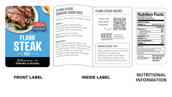 Each box contains easy-to-apply product labels that give quick access to a recipe, cooking guidelines, and a home chef tip.